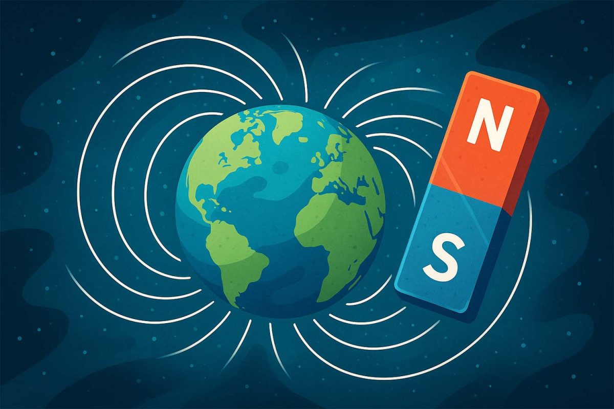 Магнітне поле Землі – це невидимий захисний щит, який оберігає нашу планету від небезпечного космічного випромінювання. Воно утримує заряджені частинки Сонця подалі від поверхні й допомагає компасам показувати напрямок на північ. Без цього поля життя на Землі могло б бути зовсім іншим, адже воно створює невидимий купол безпеки навколо нас. Давай дізнаємось, які ще таємниці приховує це дивовижне явище природи!