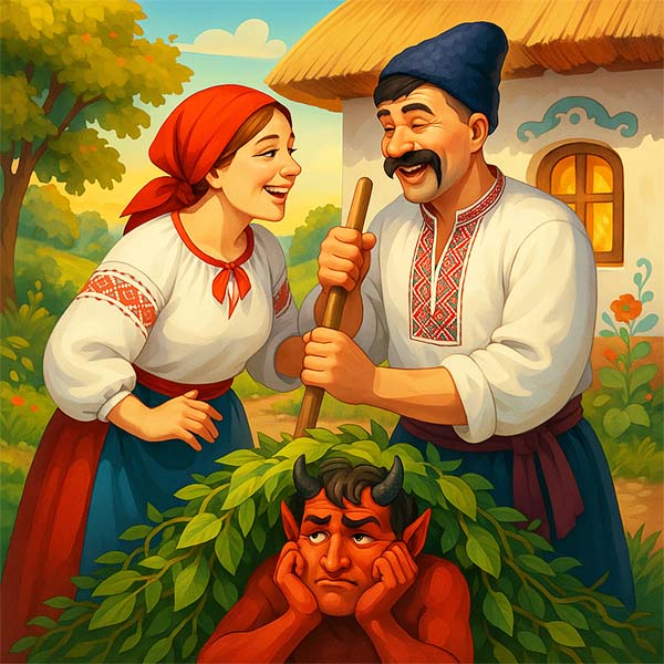 Заліз чорт під купу бадилля і думає: "Давай-но я так зроблю, щоб вони посварилися".