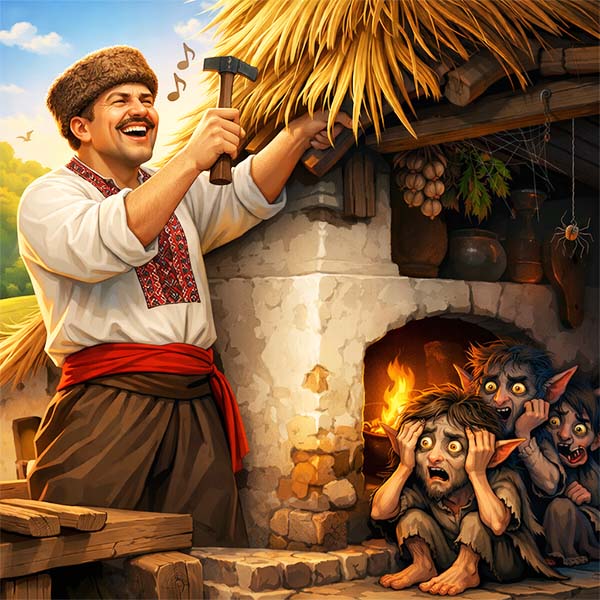– Ех, гарна погода сьогодні! – голосно вигукнув він, хоч на душі шкребло. – Саме час стріху лагодити!
