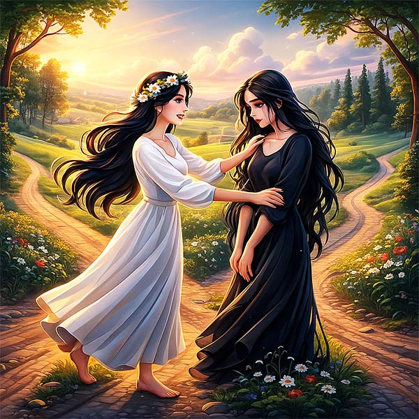 І тоді, там, на роздоріжжі, де колись розійшлися їхні шляхи, Добро і Зло пішли разом – не як вороги, а знову як сестри. Бо навіть найтемніша ніч зникає там, де хтось не боїться запалити вогник.