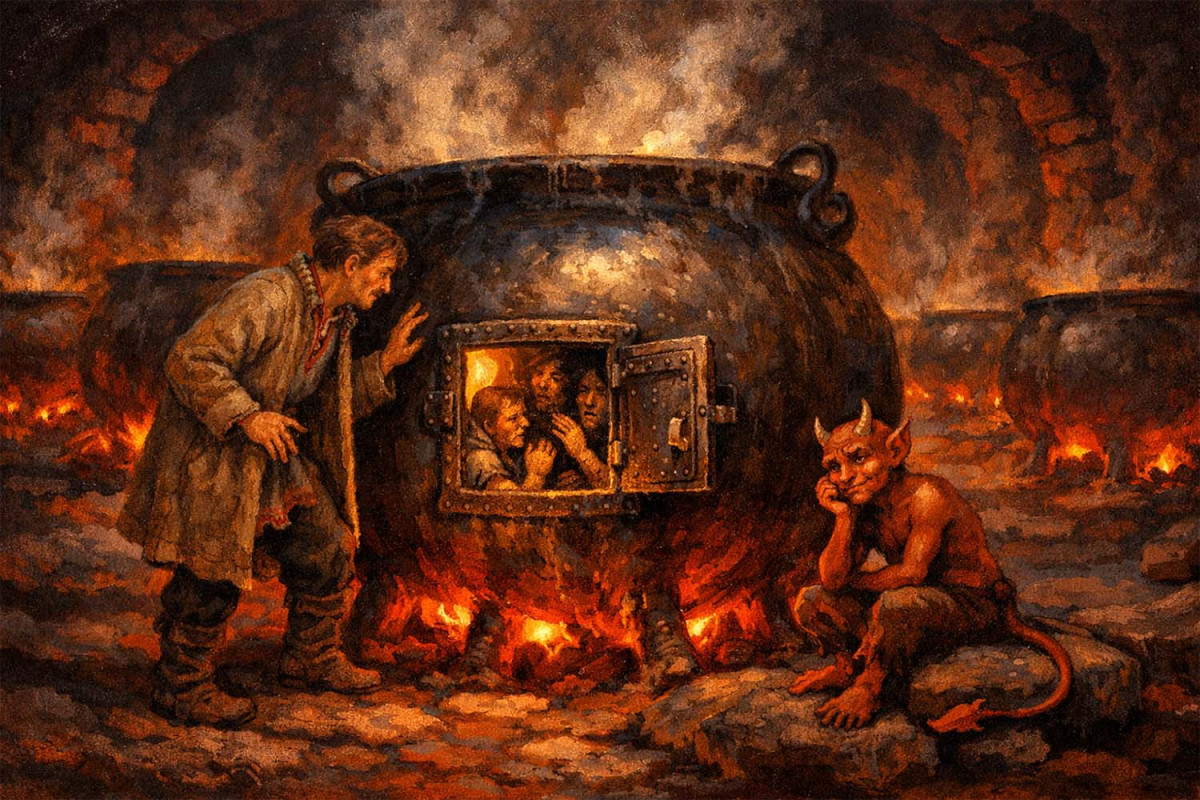 – О, ти дуже погано знаєш людей, – вишкірився біс. – Ці душі все своє земне життя тільки те й робили, що нили та нарікали. Їм завжди хтось заважав, хтось був винен у їхніх бідах. Вони так звикли жалітися, страждати і бути жертвами, що ця смола стала для них найріднішим домом. Вилізти з казана – означає взяти відповідальність за своє життя, змінити його, ступити у невідоме. А для них зробити крок назустріч свободі набагато страшніше, ніж вічно кипіти у звичній, знайомій багнюці.